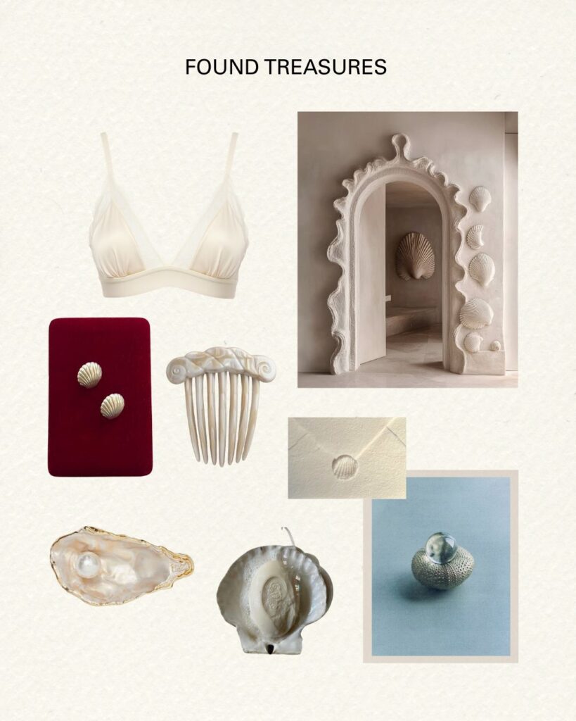 해안의 보물들을 모티프로 한 오브제 큐레이션: 은은한 진주의 광택과 부드러운 새틴 란제리의 조화. 나를 위해 세심하게 고른 이 소중한 취향들은 고요한 사랑의 감도를 높이는 우아한 매개체가 됩니다.